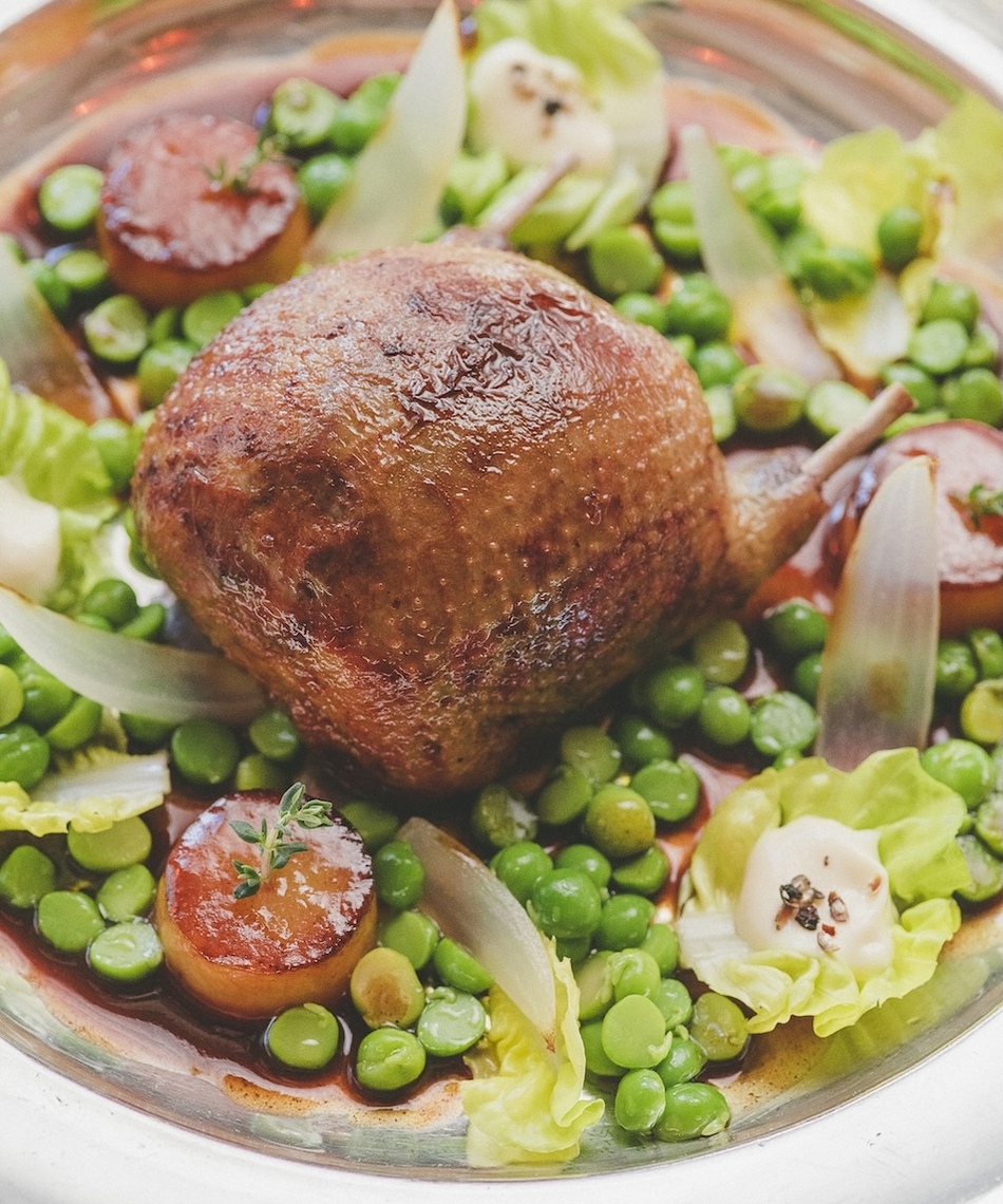 In 2019, he returned to this storied address as head chef. Guided by a subtle and contemporary interpretation of the classical repertoire, he restores the full nobility of the house signatures, Finistère pigeon in the style of André Malraux, sea bass with caviar and Challans duck with orange, each revisited with precision. In the same spirit, he reintroduced his emblematic macaroni with foie gras and truffle, reflecting an exceptional journey and a clearly defined culinary identity.